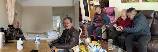 12月26日,岁末寒冬之际,民建普陀第四支部主委李祝和副主任刘万发带着民建区委领导及四支部全体同志的关怀,看望了两位九十高龄的老会员葛邦淳和章修光两位老人。