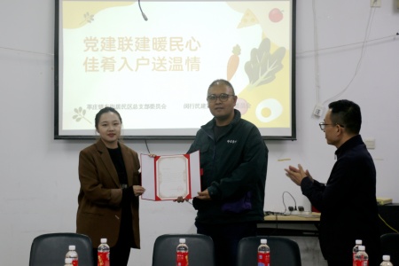 丁王蕾代表居民区向第二总支赠送了感谢状,感谢民建区委及第二总支连续多年对社区事务和困难居民的关心帮助。